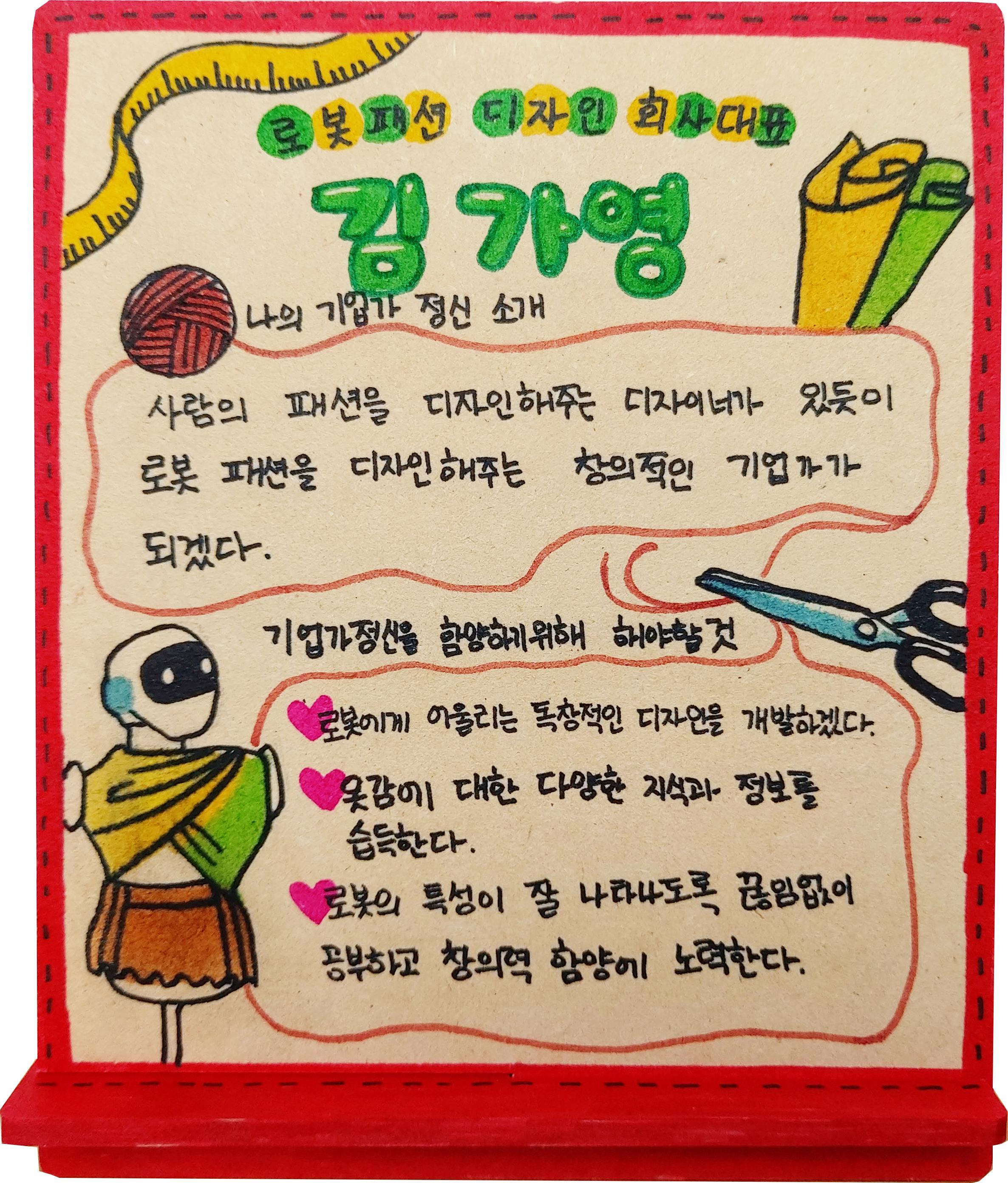 기업가정신 액자 만들기 (시각화 작업) - 핵심가치 및 기업가정신 실천항목 적기 |